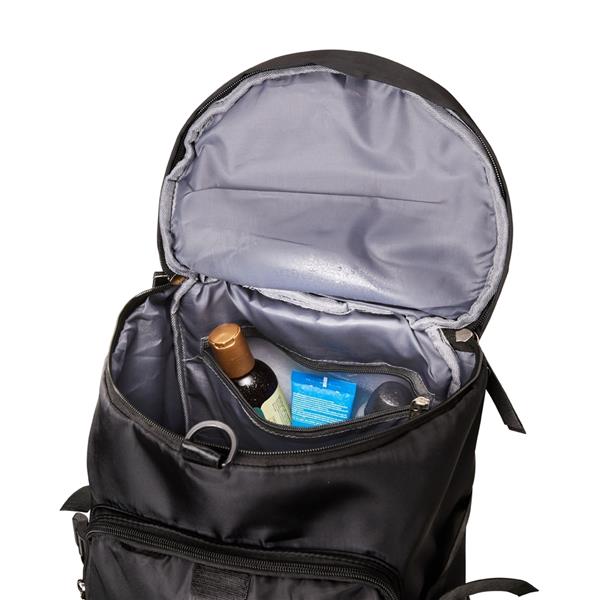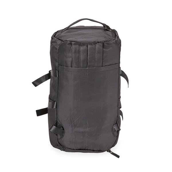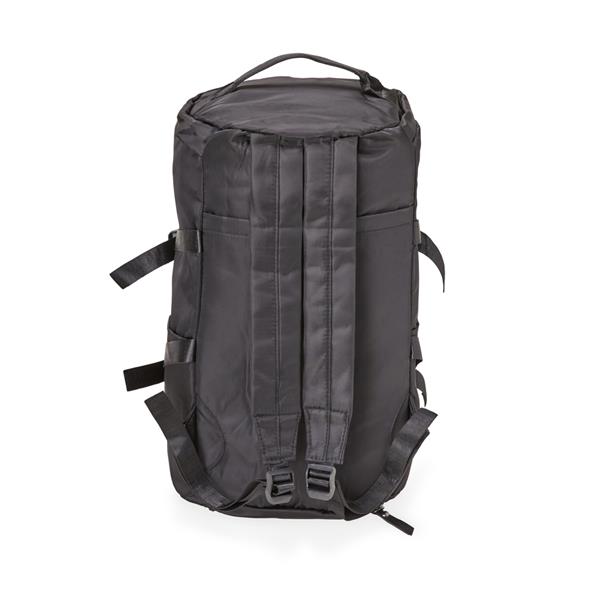 Bolsa esportiva de 30 litros em poliéster de impacto impermeável com três compartimentos, sendo um deles exclusivos para tênis. Compartimento principal com dois bolsos, sendo um deles com zíper exclusivo para itens molhados. Com bolsos laterais e duas alças de mãos, a bolsa contém alças de compensação, alça transversal removível e alças para as costas ocultas no compartimento inferior, podendo ser transportada como mochila. Gravação da logomarca em 1 cor já inclusa.